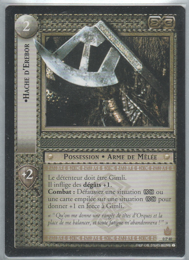 Carte JCC SEIGNEUR des ANNEAUX Hache d’EREBOR 0P40