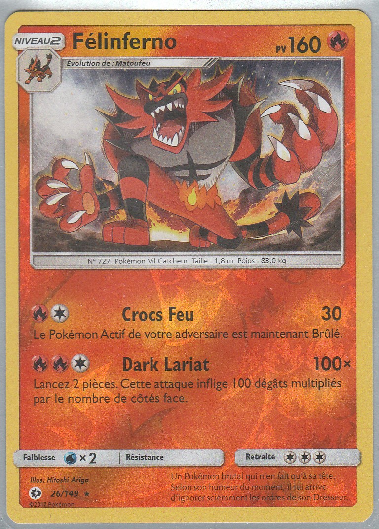 Carte POKEMON Soleil & Lune 026/149 FELINFERNO VF REVERSE